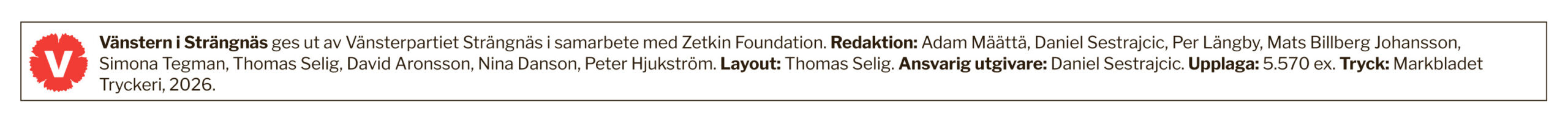 Vänstern i ... är en del av skriftserien Folkviljan. Detta är webversionen av tidingen som publicerats i Strängnäs.